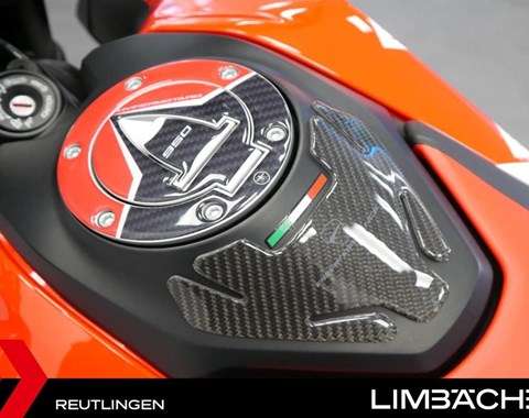 Der Fahrzeugzustand ist top. Aggressiver Look, sportlicher und furchtloser Charakter: Die Hypermotard 950 RVE geht zurück zu den Wurzeln der Supermoto-Wettkämpfe, ohne ihre sportliche Essenz zu verlieren. Breiter Lenker, schmale Seiten, geringes Gewicht für mehr Agilität bei Richtungsänderungen.